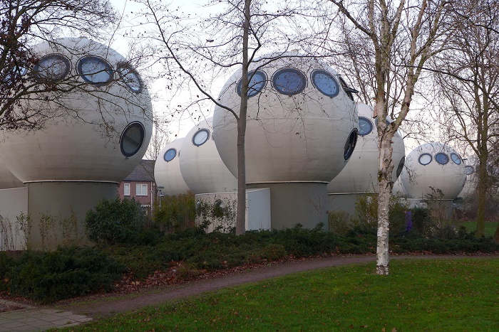 When the name of the houses is going to be translated into English, the equivalent would be ‘ball’ or ‘bulb’ and the interesting shape of the houses that is like a golf ball, was designed by the Dutch artist and sculptor Dries Kreijkamp. He thought of the idea in the late 1970s, however, with the subsidy of the Dutch Government, the houses were built in 1984.