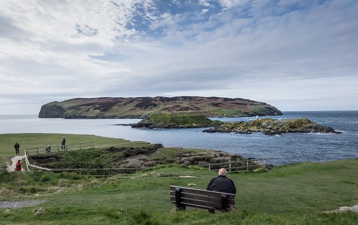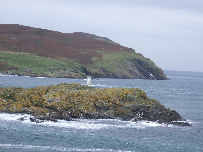 Calf of Man is a small island which is separated by a narrow stretch of water from the island nation of Isle of Man in the Irish Sea, as part of the British Isles. As it is southwest of the main island, it belongs to the parish of Rushen, and has only two seasonal inhabitants.