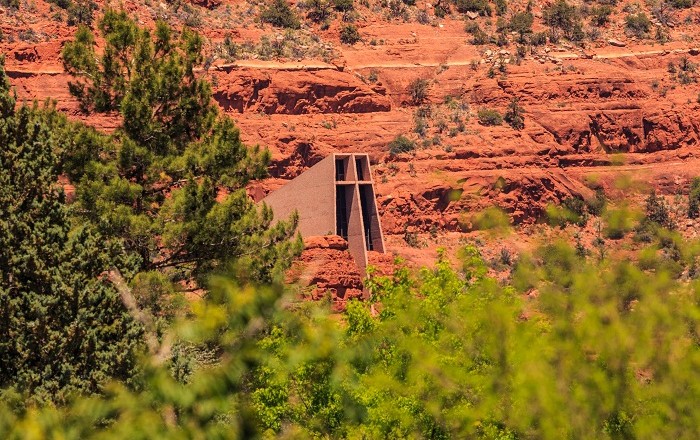 The Chapel of the Holy Cross is a Roman Catholic chapel that was built in the red rock buttes of the city of Sedona, in the central part of the State of Arizona, within the southwestern part of the United States of America. As the religious building was created by the local sculptor Marguerite Brunswig Staude, who was a student of the notable American architect Frank Lloyd Wright, she actually got the inspiration in 1932 from the then newly built Empire State Building.