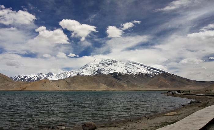 Being at an altitude of some 3,900 meters (12,795 feet) above sea level, Karakul is a deep, slightly salty water lake which is entirely frozen and forms a great white expanse when viewed from the village that has the same name on the eastern part of the lake.