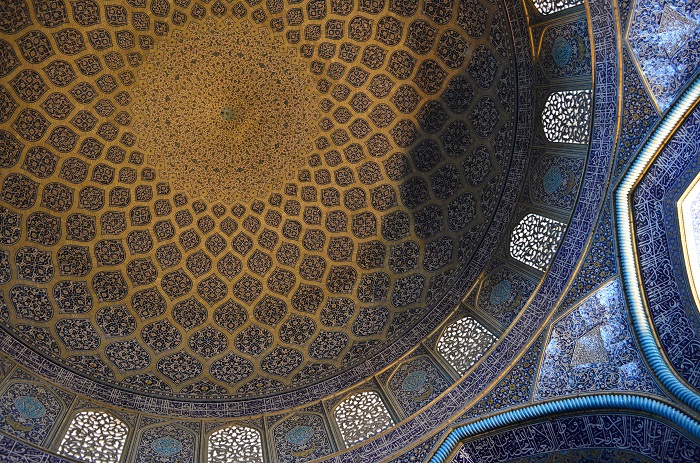 Still, hoping not to be seen by those ordinary people, the Shah ordered the architect to build an underground tunnel which is spanning the square, from Ali Qapu Palace all the way to the mosque. Not being the usual Islamic religious shrine, there is only one dome which is 32 meters (105 feet) high and 22 meters (72 feet) in diameter, however, there are no minarets, nor a courtyard.